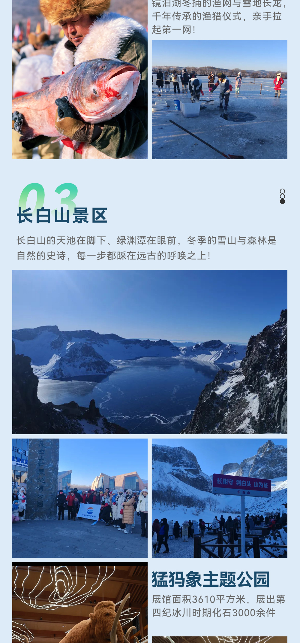 吃完午餐我们乘车去镜泊湖冰面看镜泊湖冬捕,去看冬捕的路途中我们会乘坐镜泊湖有名的雪地长龙。