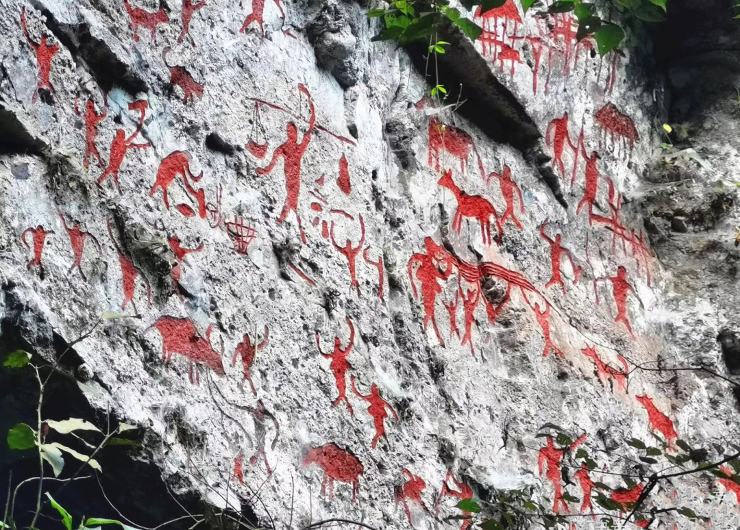 早餐后驱车沿着澜沧江一路南下,车窗外不知不觉已经变得热带风情浓郁,继续前行抵达【司岗里】,最具佤族村寨和民风民俗神圣之地。不远处是民俗特色村【班鸽村“国画长廊”】,因为远远望去酷似一幅浓黑重彩的中国山水国画,因此得名。壁画陡立成崖,崖面有的形成崖厦,有的参差不齐,蜂窝状溶孔密布,如同一幅巨型壁画,描绘了古老大地的沧桑。之后我们前往沧源非常知名的千年崖画,崖画产生于三千多年前的新石器时代晚期,是我国目前为止所发现的最古老的崖画之一。灰色的石灰岩石壁上画有赭红色的画图,当地的佤族人称为"染典姆",意为岩石上的画。这些图像真实生动地记录了先民们的生产、生活的各种场面。