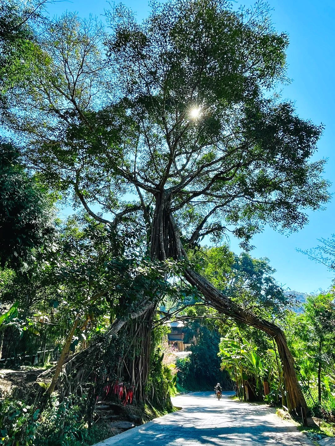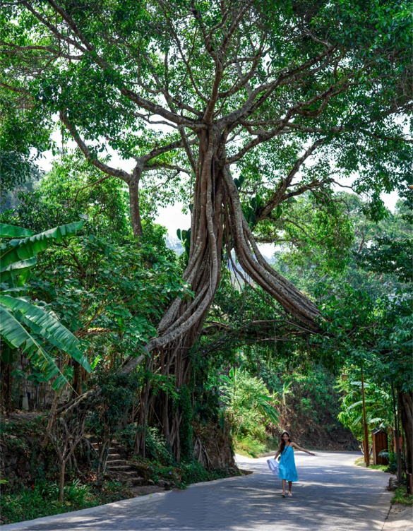 然后打卡【公主榕】,树枝叉开,拍照很有特色,随后来到【翁基布朗古寨】,电影《一点就到家》拍摄地巡礼。翁基古寨的原始保存程度与村民的淳朴让人动容,3000年古柏为代表的古树群、古茶树及传统茶文化让这个古老的寨子无言却显厚重。在寨子中和路过的村民聊天,合影,感受布朗族的淳朴和好客。再品一下地道的景迈茶,寻访千年古茶树,让自己融于景迈的山水人情中。