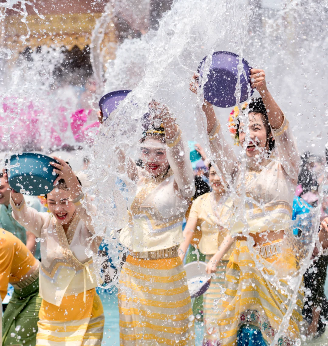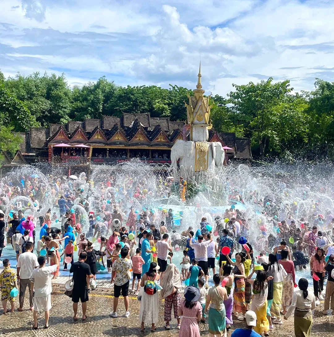 随后我们前往【傣族风情园】,几个傣族村寨连片,家家户户门前屋后也都种满了各种蔬菜水果,可以在门口的商贩里租盆子(自费),请一定带一套干净的衣服+毛巾+拖鞋(也可以在傣族园租傣族服饰泼水)。参加【天天欢度泼水节】的壮观场面,泼水狂欢咯,亲自感受傣族泼水节的狂欢和热情,泼湿一身,终身幸福的少数民族祝福!还可以蹦傣迪,气氛炸裂,嗨翻全场。泼水狂欢结束后,晚上继续住告庄。自由闲逛大金塔和湄公河星光夜市,感受这异域风情,这里的六国水上市场也一带要去逛一下哦,完全会让你感觉到了泰国啦!