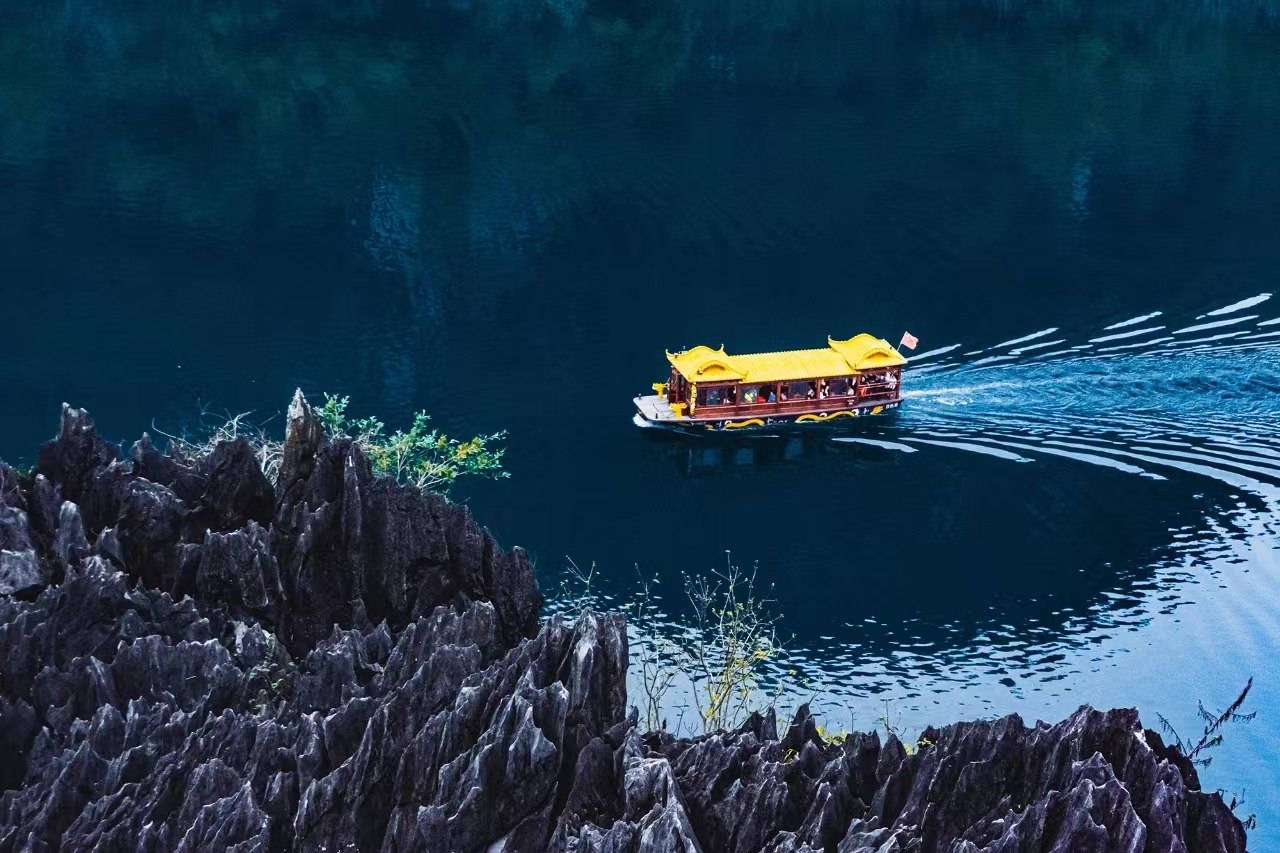 浩坤湖山清水秀,风景如画,湖中独峰耸立,岛屿交错,水天一色;两岸山奇崖秀,浑然天成,如梦幻仙境,被世人美誉为“水墨浩坤湖,世外新桃源”。抵达后,在木棉花观景台观景,后乘车前往渔人码头自由打卡,乘船游览浩坤湖观无敌湖景,多角度感受浩坤湖的魅力。