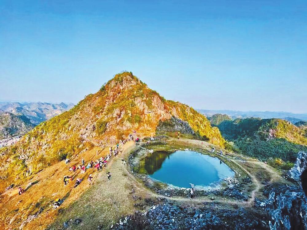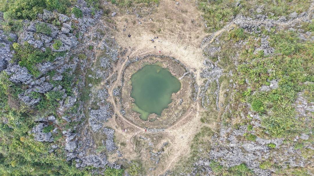 龙养天坑长期受地下水溶蚀石灰岩,再经岩层塌陷形成的天坑群,共7个天坑,最大直径约300米、深约200米,坑底有溶洞、地下暗河,季节性形成草甸、花海、浅湖等。行程结束后,乘车前往天等县天南村,游览桂西南壮美天池【天南天池】(车程约30分钟,游览时间约1小时)