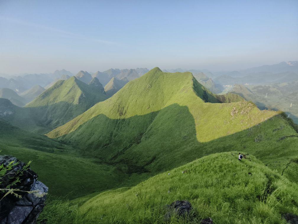 观喀斯特地貌峰丛,有8座山峰,目前已开放1-3号山峰,1号峰约760米,2号峰地势较平缓,3号峰为四期最高约770米。四期为当地村民自发新开路线,路线为平路+石阶+野路组合,登上四期3号峰顶视野开阔,可俯瞰峰林人家,日出日落云海。行程结束后,乘车前往天等著名的田园风光观赏地都康田园打卡(车程约1小时,游览时间约30分钟)