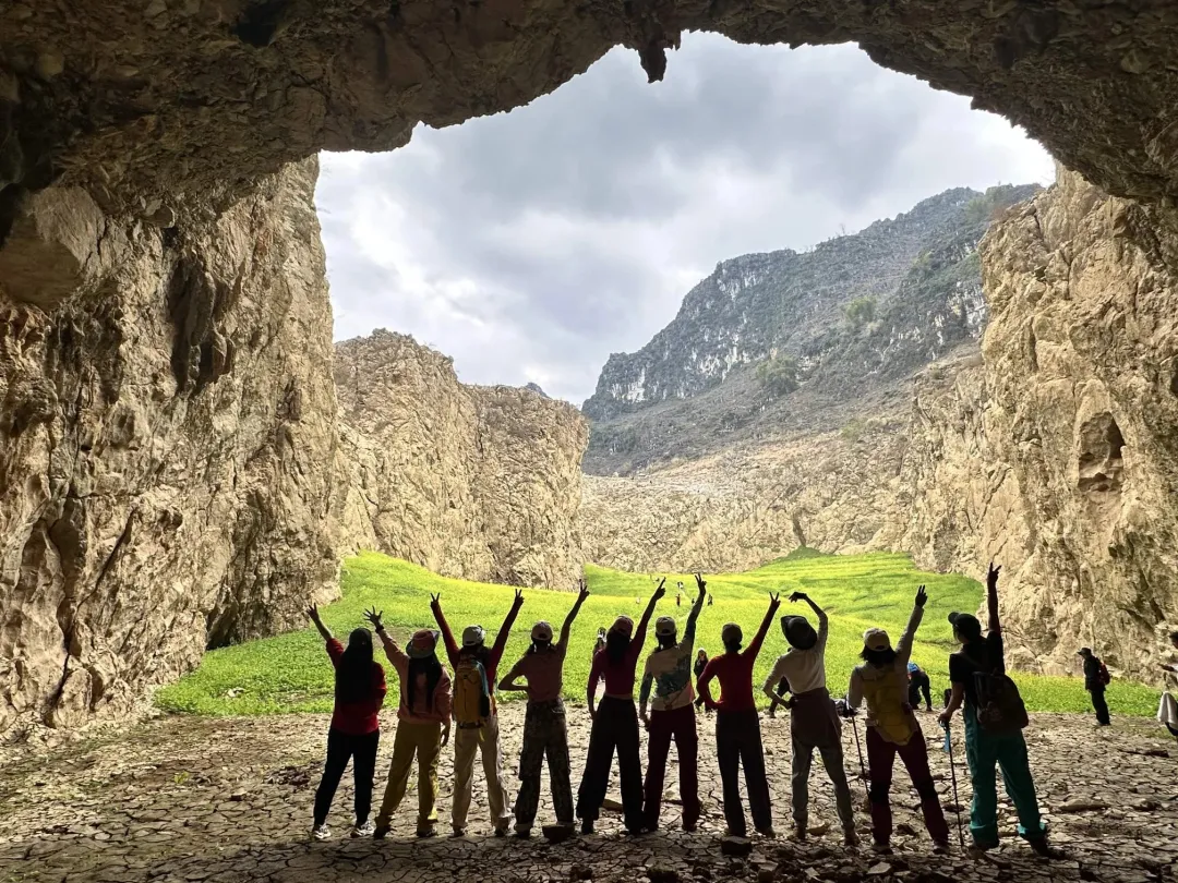 后攀爬猪笼洞开始徒步之旅(徒步路线:猪笼洞-棕榈洞-弄林屯,全长约8KM,有爬升,约130M和400M)。行程结束后,乘车前往凌云县城入住酒店,晚上自由活动。