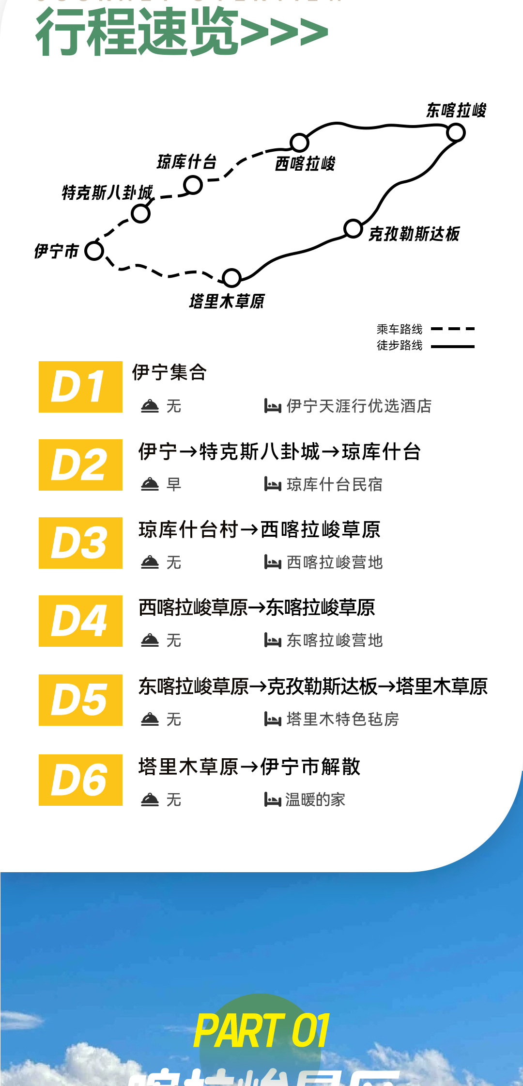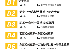 1.交通:伊宁起始往返包车费用,根据人数选择适合车型;