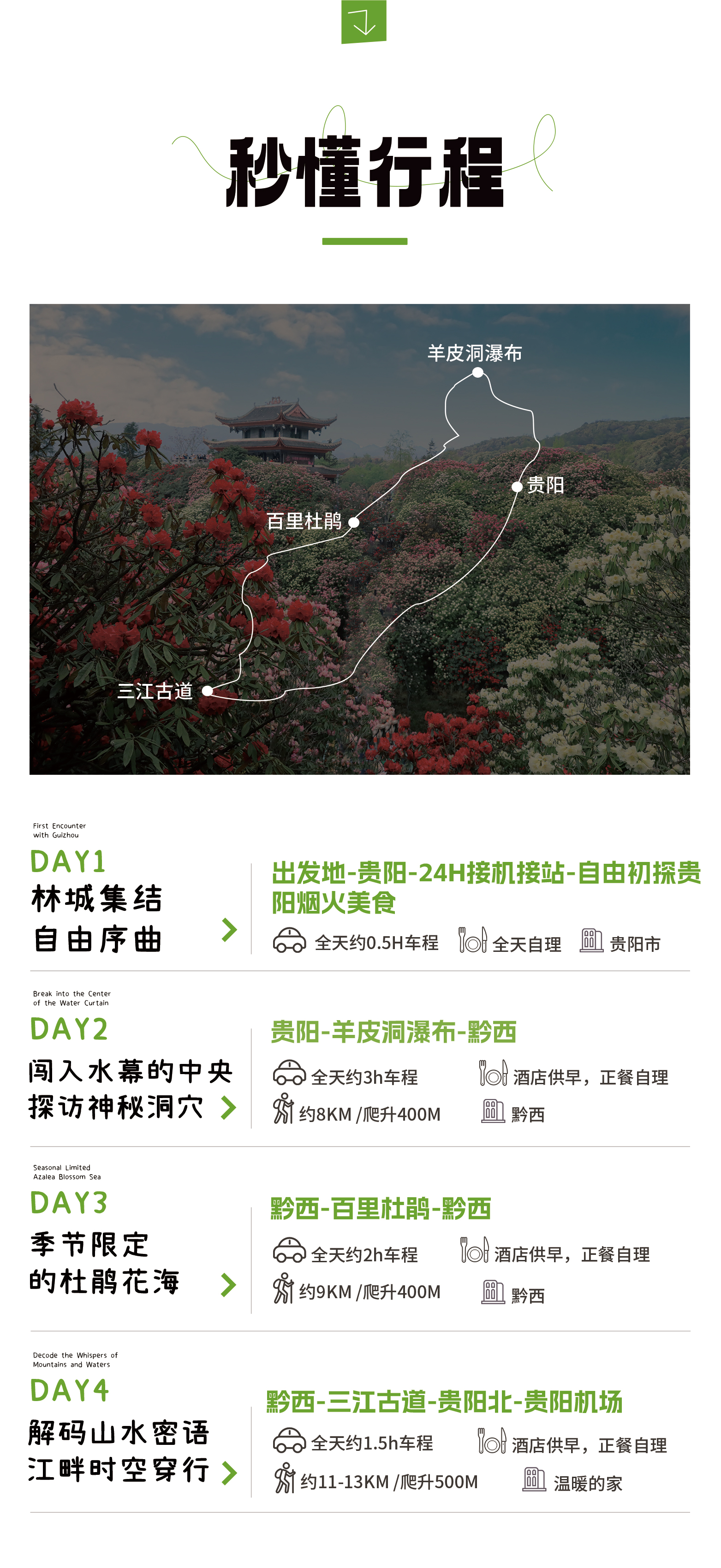 大家根据出发地的高铁动车/航班时间抵达【贵阳龙洞堡机场、贵阳北站、贵阳东站、贵阳站】。我们提供24小时接机/接站服务,车次时间不限,随到随接,早到早玩。