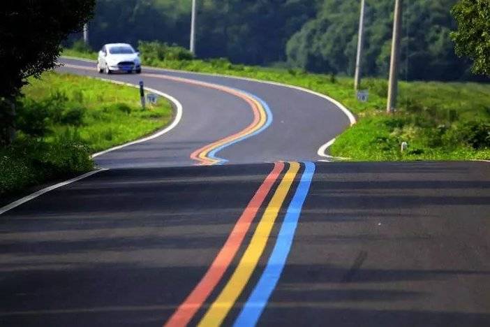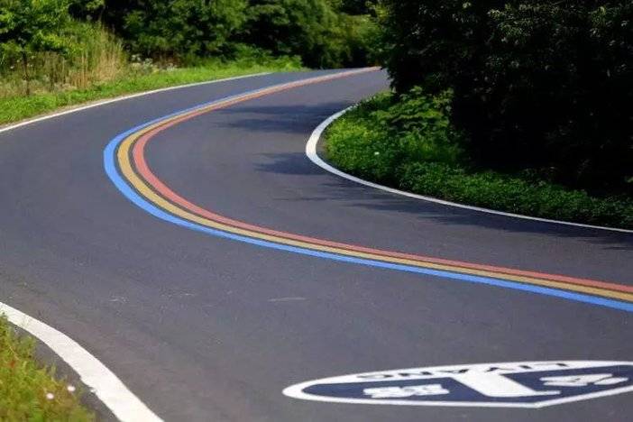 驾车沿104国道进入瓦屋山丘陵地区,眼前便是一道蜿蜒的彩虹,溧阳1号公路的行道线用红黄蓝三色喷涂,行驶其间色带灵动的飘移。