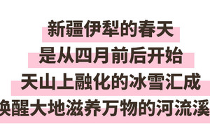 来自中世纪最大的原始野杏林,在巩乃斯河北岸盛放着浪漫,杏花沟用一浪接一浪的美,渲染新疆伊犁的春色。