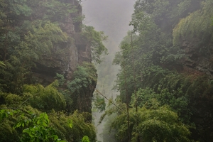 宜兴的一线天,一块高达40多米长,长80多米的长方形巨石,中间有一条容纳一人上下的缝隙,坐落在南山竹海深处,需手脚并用方可通过。