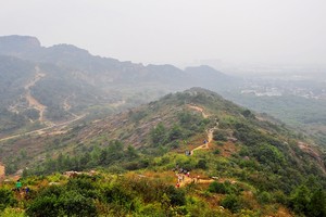 徒步路线:灵岩山风景区→大焦山→白马涧→花山→贺九岭→鹿山→皇冠山→兰凤寺→绝望坡→大阳山森林公园→树山村