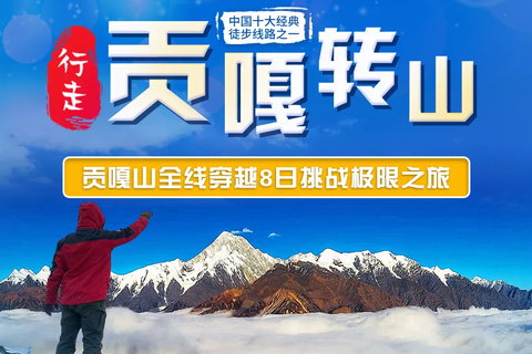 贡嘎徒步为中国十大徒步线路之一,四川最经典徒步线路,2019年全年最火热的徒步。途中有小贡嘎、达多曼因、勒多曼因、嘉子峰、日乌且峰等雪山终年积雪.海拔7556米到1500米,落差达6000米的垂直自然带变化,冰川、荒漠、甘孜高山草甸、灌木林、原始森林、亚热带雨林,都在我们行程中啦!