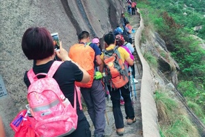 13:00 抵达江南第一关徒步开始啦。这里是徽杭古道的精华地段,万丈悬崖上凿出的石板栈道,下方是逍遥谷,气势恢宏。