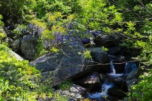 位于吴越古道西南侧,峡谷内泉水纵横,瀑布飞溅,大大小小瀑布相连。其中黄石岩瀑布最为壮观,整个石壁呈现金黄色,金光闪闪,顺溪而上、巨石高耸。攀石岩、惊心动魄。饮泉水,滴滴润喉。