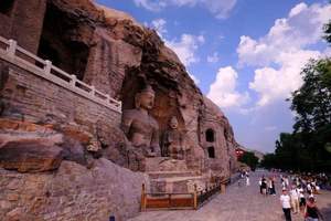 云岗石窟位于中国北部山西省大同市城西约16公里的武州(周)山南麓、武州川的北岸,石窟依山开凿,东西绵延约1公里。存有主要洞窟45个,大小窟龛252个,石雕造像51000余躯,为中国规模最大的古代石窟群之一,与洛阳龙门石窟、敦煌莫高窟并称中国三大石窟,后加麦积山石窟称四大石窟。