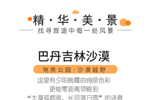 17:00乘景交车前往八道桥,巴丹吉林沙漠北缘-重头戏来了【越野车沙漠冲浪】驰骋在雄伟的空旷的茫茫沙海之中,沿着起伏的沙丘俯仰腾挪,一路尖叫不断。训练有素的司机快速的在沙丘之中穿行,忽上忽下,时左时右,快速冲顶,酣畅淋漓,带给队友们挑战和刺激。