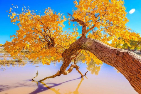 08:00用早餐后出发前往【额济纳胡杨林】(全天畅玩),这里的美景因张艺谋《英雄》而名声大起。