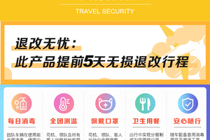 (5)6日游及更多天数出游,出发前1~2日不可申请退款;出发前3~5 日可退团费的60%;出发前5天及以上可全额退款