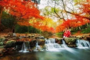 深秋之时,红色的枫叶色彩斑斓,气势上不输京都,这里就是杭城的九溪十八涧。