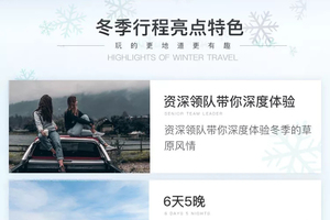 在这里我们可以体验雪原骑行(20分钟),感受驰骋雪原的美妙,也可以选乘骆驼爬犁车(雪原骑行和骆驼爬犁车只能二选一)。大人们还可以陪孩子们一起堆雪人,每团五个雪堆,自由发挥,随意雕琢。还可以进入狼园,野狼高空捕食,智斗野鸡,明星狼参观合影,群狼夺肉,训狼表演。