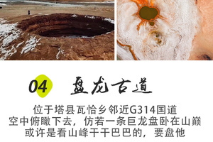 之后前往【盘龙古道】是最值得期待的惊喜,一条盘山巨龙离开魔鬼城穿过村庄直上山顶,道道急弯像画上去的一样,一路盘上去消失在大山之巅,更清晰的看到这古道的惊艳时刻。
