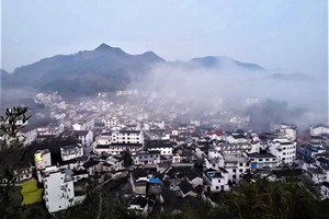 粉墙黛瓦和高高的马头墙,水墨画般的徽州民居、古巷青石、祠堂、廊桥散落在群山环绕的山野之间