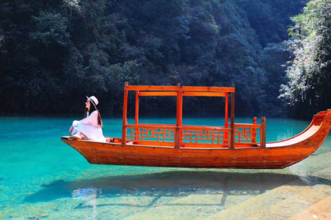 屏山峡谷深达百余丈,溪水碧蓝清澈见底;如果遇到晴天,阳光折射入水面,行舟于上宛如悬浮在空中一般。适时乘船游览,小舟行驶在峡谷底部的水面上滑动,宛如悬浮在空中一般。我们一眼可以望到清澈的水底,这里的美依然令人沉醉。