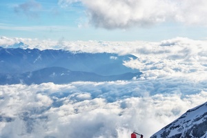 欣赏云朵在脚下的深谷布起一道浩浩荡荡的巨幕......