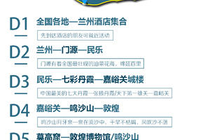 早餐后乘车前往被《中国国家地理》杂志评为“中国最美的七大丹霞地貌景观之一”的【张掖丹霞景区】,张艺谋导演的电影《三枪拍案惊奇》曾在此取景拍摄。其气势之磅礴、场面之壮观、造型之奇特、色彩之斑斓,大自然的鬼斧神工,令人惊叹。它不仅具有一般丹霞的奇、险,而且美在它的色彩。每当落日时分,夕阳在七彩的丹霞山脉间缓缓流淌,余晖将群山包裹,层次愈加分明,峰峦雄伟,非常壮美;素有“天下第一雄关”之称的【嘉峪关景区】,给足大家一整天时间感受昔日塞外雄关的辉煌。这里是明长城西端的重关,也是古代“丝绸之路”的交通要塞。登楼远眺,沉眠的祁连雪山,屹立的戈壁大漠,斑驳的马道,还有刻字青砖,抚着风雨侵蚀后的薄土夯墙,去聆听滚滚黄沙中的万马奔腾。适时前往酒店办理入住。