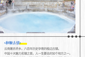 游玩完毕,喜欢泡温泉的伙伴,可以在这里尽情享受大自然的馈赠,不喜欢温泉的朋友可游玩结束后,约15:00回到【和顺古镇】,伙伴们可以在酒吧点一杯鸡尾酒,落座窗前,细细品味这东、西方文化的碰撞。随便绕进小巷中一家古老的庭院,品尝老爷爷老奶奶亲手熬制的腾冲稀豆粉,或是漫步于乡间小河旁,沐浴夕阳下,和洗衣庭里的老奶奶聊聊天......古镇何其多,却只有和顺,成了无数人不愿离开的“温柔乡”!