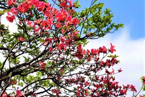 每年到了四五月份,鸬鸟山顶满山遍野的杜鹃花大片大片地盛开,把整个山顶印成一片通红,春花烂漫,空气湿润,使人心旷神怡。
