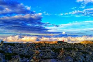 最高点拔仙台是中国大陆青藏高原以东最高峰,海拔3767.2米,雄踞于秦岭群峰之上,为太白山绝顶,恰似一个不规则三角形锥体。