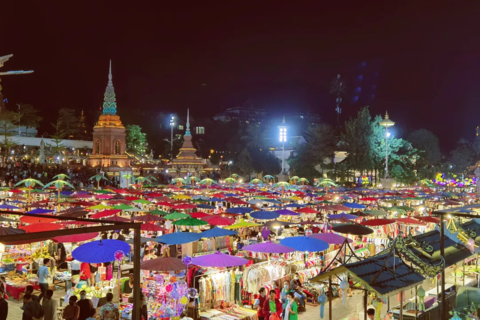 安静的大金塔身后,就是人声鼎沸的星光夜市,它是大金三角最具规模、最具特色的夜市。