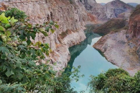 就在南京江宁,青龙山东麓又有一处不太为人所知的小众景点,是一片地处山凹中由矿坑积水而成的水面。这一带具体的地名叫做“十里长山凹”,顾名思义,它一定在一个狭长的山凹里,我们又叫它青龙山大峡谷。由于水面狭长曲折,两岸又是刀劈斧削一般的峭壁,与风景名胜三峡很有点神似,火出圈后我们又叫它“南京小三峡”。