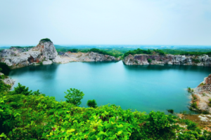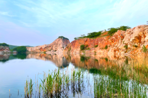 位于江苏省南京市江宁区郄家山郄坝埝水库东北的宝卡湖是一个因采矿而形成的矿坑湖,最深处约50米,四周悬崖陡峭,深蓝的湖水清澈明净,阳光洒下,水面上一片金光,波光粼粼,所以被称为是南京的纳木措。