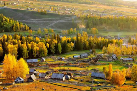 炊烟升起之时,暮色即将笼罩大地, 我们登高拍摄西北第一村的日落时的光影,用“油画般”这一类的修辞似乎不够恰如其分,因为它更贴近于童话故事虚构出的幻境,秋季一到,山村是五彩的红、黄、绿、褐色,层林尽染,桦树、杨树林中错落有致的尖顶木屋和牲畜栅栏,远处阿勒泰山的皑皑雪峰……相信你会拍出唯美的梦幻家园。