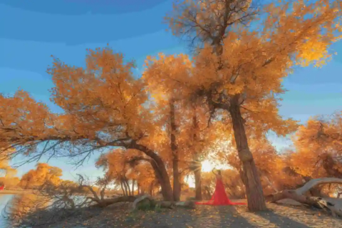 08:00用早餐后出发前往【额济纳胡杨林】(全天畅玩),这里的美景因张艺谋《英雄》而名声大起。
