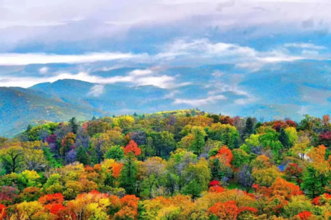 山色也呈现出渐变的色彩,红色、黄色、橙色、紫色、绿色等各种颜色点缀其中,层林尽染,分外艳丽。