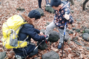 12:00适时路餐,餐后继续出发,我们继续用双脚丈量它大开大合的秋色。入秋时节,止马岭满山遍野的杨树、栗树、山槐、沙松浅红深黄,蜿蜒崎岖的山道落叶沙沙。当你穿梭在止马岭山系中,会在落满黄叶的山路上会发现大小不一的石蛋,那肯定是火山喷发留下的。