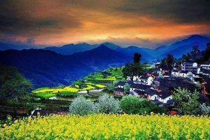 江岭或许是婺源最值得去的地方,因为那里漫山遍野的油菜花是呈梯田状,从山顶铺散到山谷下。站在山顶望去,脚下大片的山谷内,油菜花层层叠叠,一望无际,中间围拢着几个小小的村落,黑瓦白墙的徽派民居夹杂在一片金黄之间,唯美意境。尤其是早上晨雾弥漫之时,非常壮观。