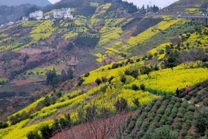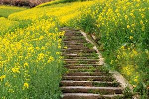 春暖花开的季节,古道石平如砥,行走其间,步履轻盈,无攀山之劳累。古道两旁的油菜花花海如潮,整条古道在山坡上的花田间穿行,夹道香风拂袖来。