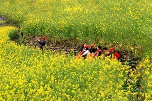 徒步“徽州最美的花海古道”——文昌古道,春暖花开的季节,古道石平如砥,行走其间,步履轻盈,无攀山之劳累。古道两旁的油菜花花海如潮,整条古道在山坡上的花田间穿行,夹道香风拂袖来。 烟花三月,石潭村正是油菜花烂漫的时节,一瓣瓣明晃晃花朵,染黄了山川田野,徒步下汰环线,一路徜徉于花海之中。