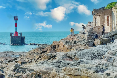 冠头岭海滩,也被叫做南万海滩或海枯石烂。这里北海观日落的绝佳去处。运气好还能在这里遇见身穿婚纱盛装的新人对着“海枯石烂”对彼此许下一生的誓言。