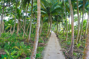 椰梦长廊全长20公里,与三亚市区连接,交通便利,岸上绿树带有著名的二十里椰林画廊。