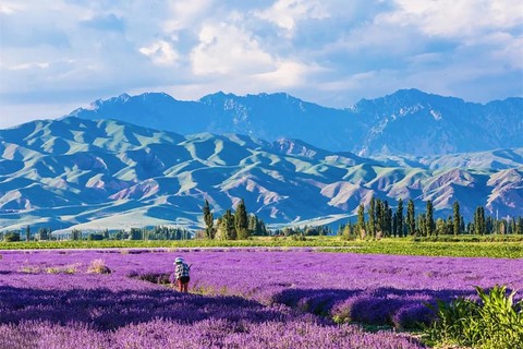 从景区出来,我们行驶在壮观宏伟的果子沟大桥上一路前行,抵达薰衣草庄园——解忧公主薰衣草庄园(原科古尔琴薰衣草园),这里是亚洲最大的薰衣草种植园,紫色的花瓣,烈日下茁壮绽放。远望科古尔琴是氤氲着紫色的朦胧;近看是如织游客的赏心悦目,一切都是美丽的存在。