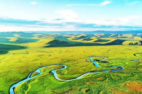 10:30 沿着蜿蜒曲转的莫日格勒河抵达——感受真正的草原深度游,赏着蓝天、白云、碧草、组成的多变原始风光。