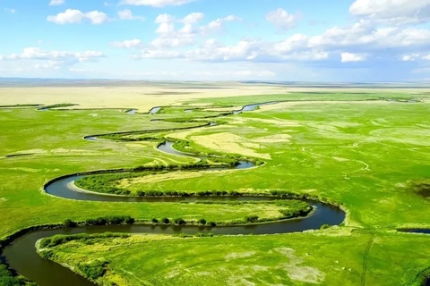 10:30 沿着蜿蜒曲转的莫日格勒河抵达——感受真正的草原深度游,赏着蓝天、白云、碧草、组成的多变原始风光。