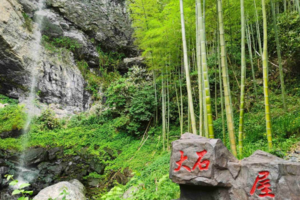 传说太平天国时期,太平军曾经在大石屋驻扎过,石屋可供几百人休息,避雨,石屋前有一水柱自五十米高的悬崖上飞流而下,甚为壮观。
