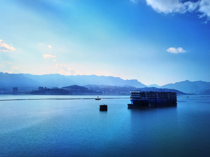 出闸后,视野更加开阔,江水奔腾,风光旖旎。