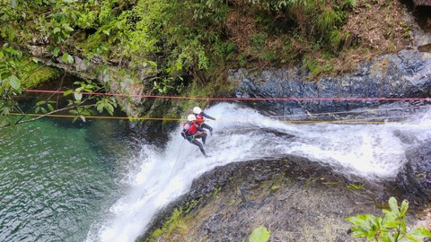早上睡到自然醒,早餐,前往打鼓岭瀑降基地,听从教练的教学穿戴好装备,一个接一个的开始瀑降体验。瀑降,它不像蹦极那么“动人心魄”,也不像登山那么“孤单寂寞”;你可以体验瀑布上飞流直下的快感,也能感受清冽山泉水与肌肤的亲密碰撞,你可以选择当潇洒的飞人也可以稳健的步步为营,你的瀑降,你做主,你的安全,我保障!