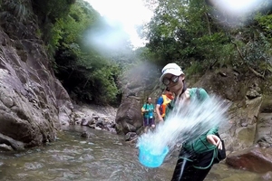 集合前往蝴蝶谷,穿戴好装备,徒步一段后,正式开始溯溪而上,出发进入峡谷。踏进水中,清爽直透心头,大家一路嬉戏玩水。峡谷内巨石林立,流水淙淙,碧潭处处,需要伟大的团队协作精神。大家手脚并用,上拉下托,才能使得老驴带新驴,帅哥带妹子,顺利完成峡谷穿越计划!